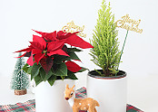 [로켓프레시] 모리앤 크리스마스 포인세티아 + 율마 + 도자기화분 2개입 + 메리크리스마스픽 2개입 + 조명 2개입 세트[17,300원]