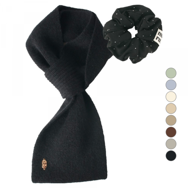 마스마룰즈 여성용 이지홀 팬던트 니트 머플러 + 마마 스크런치 세트