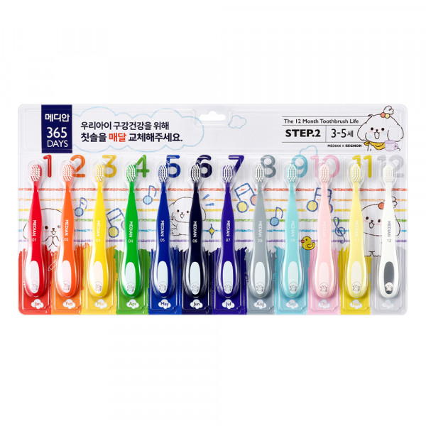 메디안 365DAYS 스텝2 어린이 칫솔 세트, 혼합색상, 12개, 1세트[10,960원]