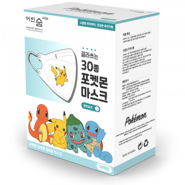엣지 포켓몬스터 컬러 마스크 새부리형 30종 세트 대형, 30개입, 2세트, 혼합색상 가격: 31,500원 KF94 어린숨 포켓몬 피카츄 꼬부기 황사 마스크 30매, 2개, 30개입 가격: 9,900원 어린숨 엣지 포켓아트심볼 마스크...