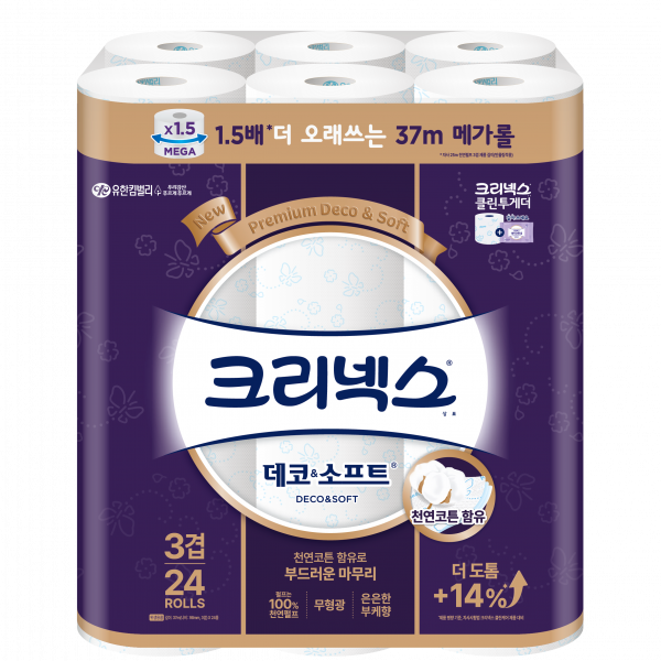 오늘 소개할 크리넥스 3겹 데코&소프트 천연펄프 롤화장지는 부드러움과 튼튼함을 동시에 갖춘... 1롤당 37m의 넉넉한 길이로 교체 주기가 길어 편리합니다. 24개입 대용량 패키지라 온 가족이 오랫동안 사용할 수...