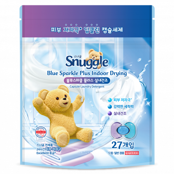 " 제품 소개 스너글 캡슐 세탁세제 블루스파클 플러스 실내건조 (27개입) 깔끔한 세탁력과... ────────────── 구성 & 용량 1팩: 캡슐 세탁세제 27개입 세탁 1회에 캡슐 1개 사용...