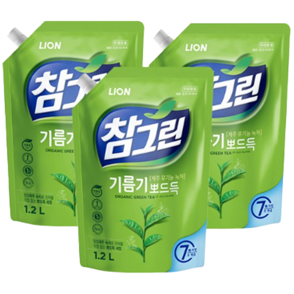참그린 녹차 뽀드득 주방세제, 1.2L, 3개[19,400원]