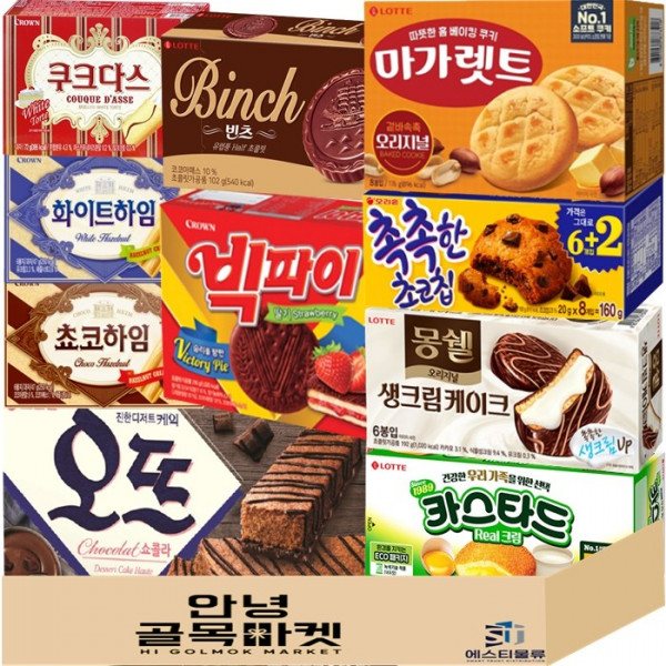 [안녕골목마켓] 사무실 과자 세트 10종 오뜨 쇼콜라 몽쉘 생크림 빅파이 마가렛트 카스타드 빈츠 촉촉한초코칩 쵸코하임 화이트하…