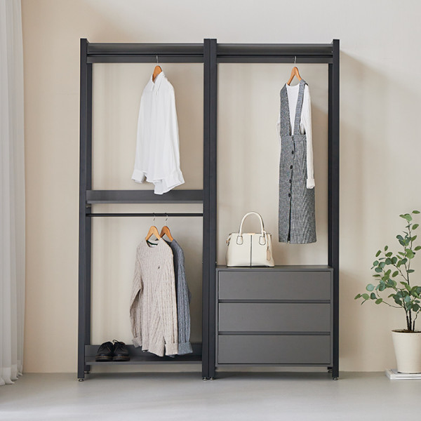 퍼리든 큐브 드레스룸 시스템 행거 1600 2단 + 서랍장 방문설치, 블랙 구경하러가기