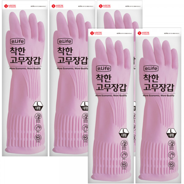 롯데이라이프 착한 고무장갑 대, 핑크, 대(L), 5개[6,590원]