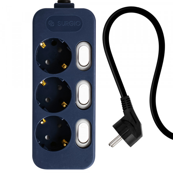 써지오 3구 개별 컬러 멀티탭 딥네이비, 1개, 3m, 네이비