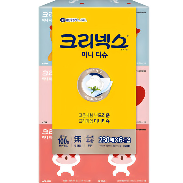 크리넥스 천연펄프 카카오 디럭스 미니 각티슈 2겹, 230개입, 6개[6,320원]