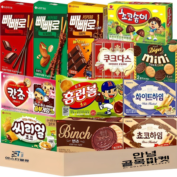 [안녕골목마켓] 곽과자12종세트_빼빼로3종+홈런볼+빈츠+다이제미니+쿠크다스+쵸코하임+화이트하임+씨리얼+칸쵸+초코송이, 빼빼로+홈런볼+빈츠+다이제미니+쿠크다스+쵸코하임+화이트하임+씨리얼+칸쵸+초코송이, 1개