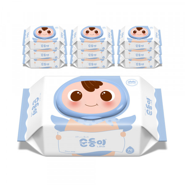 순둥이 오리지널 플러스 엘블루 아기물티슈 캡형 75평량, 70매, 10팩