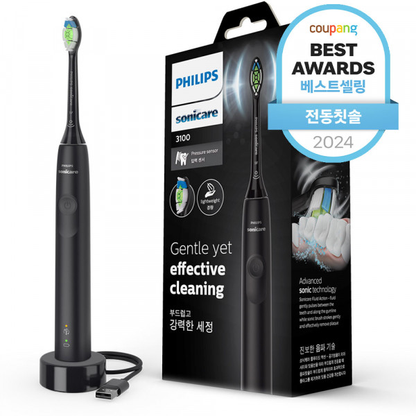 필립스 소닉케어 3100 시리즈 음파 전동칫솔, HX3671/54, 블랙, 1세트 구경하러가기