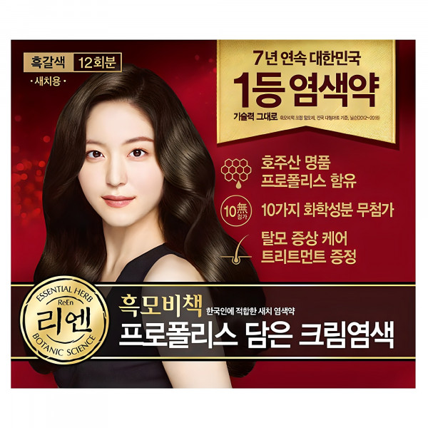 리엔 흑모비책 프로폴리스 담은 크림 염색제 새치용 12회분, 흑갈색, 1개[14,700원]