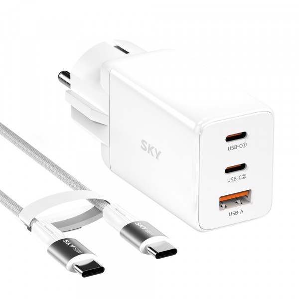 SKY 필 GE10 GaN 65W 3포트 PD QC 접지형 고속 충전 어댑터 SKY-GE10, 화이트, 1개