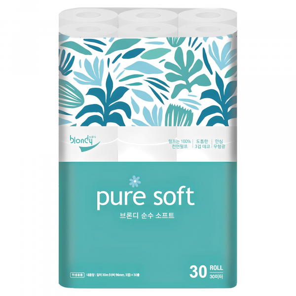 브론디 순수 소프트 천연펄프 3겹 롤화장지, 30m, 30개입, 1개