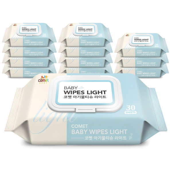 코멧 라이트 아기물티슈 휴대용 캡형, 40g, 30매, 12개[7,290원]