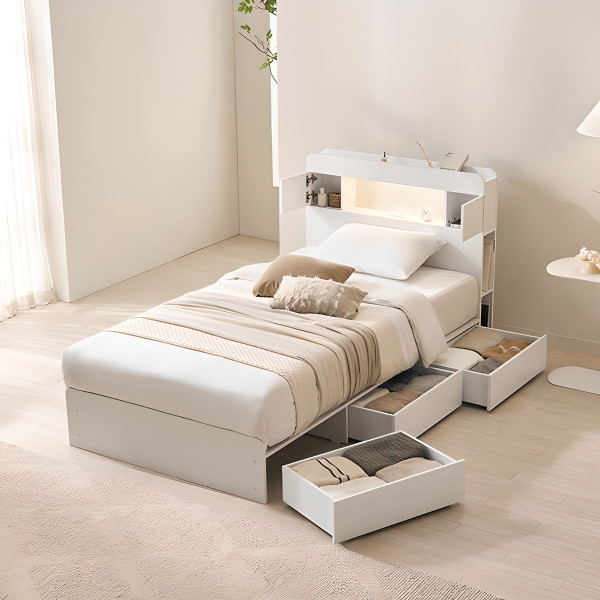 삼익가구 루이드 LED 3단 수납 침대 프레임 + 베이직 본넬 매트리스 세트 방문설치, 화이트(프레임) + 아이보리(매트리스) 구경하러가기