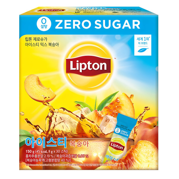 버전 립톤 제로슈가를 데리고 왔어요~ ✔️앞면은 아이스티 복숭아, 뒷면은 iced tea peach 한국어와... 0% 립톤 제로슈가 아이스티 믹스로 더 가볍고 건강하게 즐겨보세요~ ✅섭취방법 : 물 100ml 당 스틱 1개(5g)...