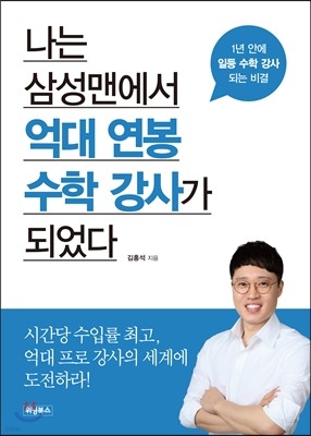 [도서] 나는 삼성맨에서 억대 연봉 수학 강사가 되었다 : 1년 안에 일등 수학 강사 되는 비결 (14,400원) ▶ 해당 상품 바로 가기 ◀